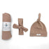 Organic Jersey Swaddle + Beanie or Topknot Set Sand