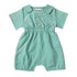 Collared Button Cotton Sleeved Romper - Apple Green Gingham